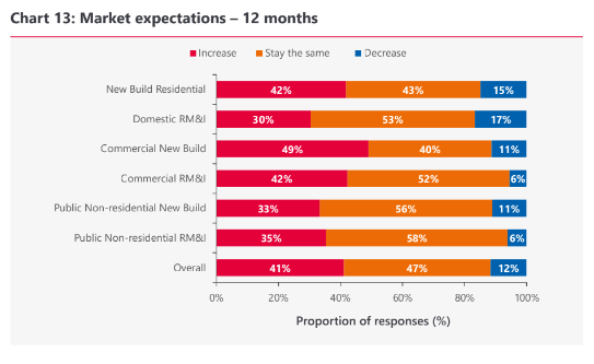 Very few contractors expect a decrease in work (between 6%-17% of repondents), with one segment in the industry expecting a net increase.